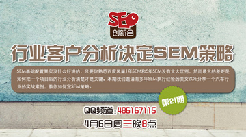 SEM基礎(chǔ)配置其實(shí)沒什么好講的,只要你熟悉百度鳳巢1年SEM和5年SEM沒有太大區(qū)別,然而的差距是如何把一個項(xiàng)目后的行業(yè)分析清楚才是關(guān)鍵。本期我們邀請有多年SE... [閱讀全文]