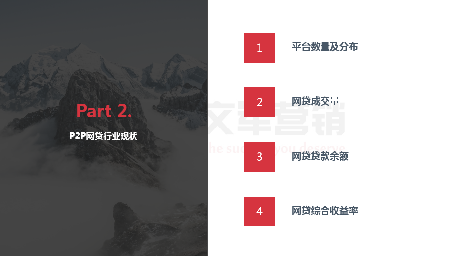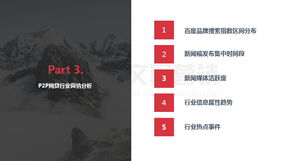 2017年9-11月網(wǎng)絡(luò)借貸行業(yè)營銷調(diào)研報告由文軍營銷收集整理制作,本報告包含了p2p網(wǎng)貸宏觀環(huán)境分析、p2p網(wǎng)貸行業(yè)現(xiàn)狀分析、p2p網(wǎng)貸行業(yè)輿情分析、p2p網(wǎng)貸行業(yè)seo分析以及p2p網(wǎng)貸行業(yè)未來趨勢分析。以下是報告全部內(nèi)容,敬請觀看!